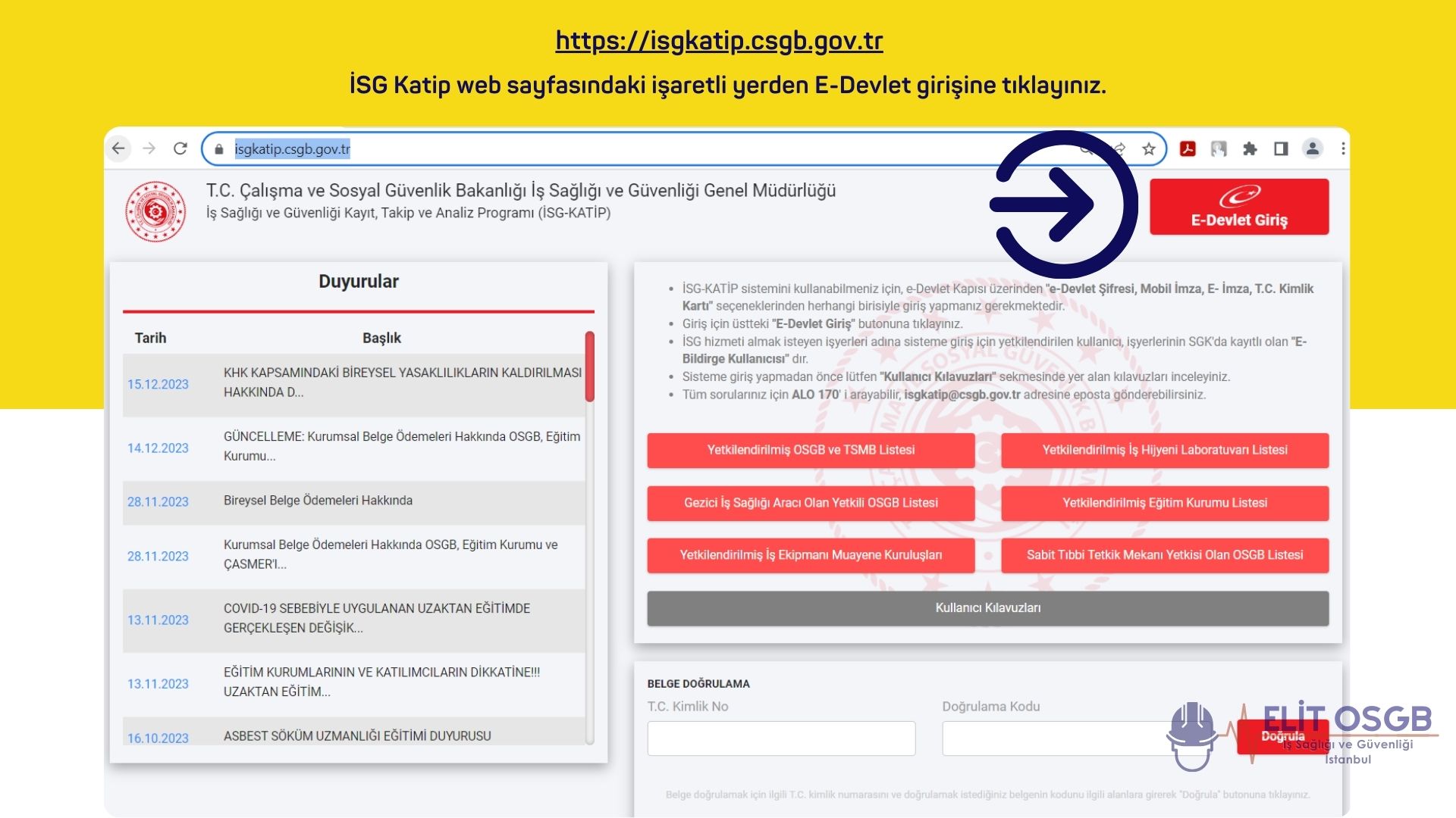 İSG Katip sistemine https://isgkatip.csgb.gov.tr/ adresinden ulaşabilirsiniz.